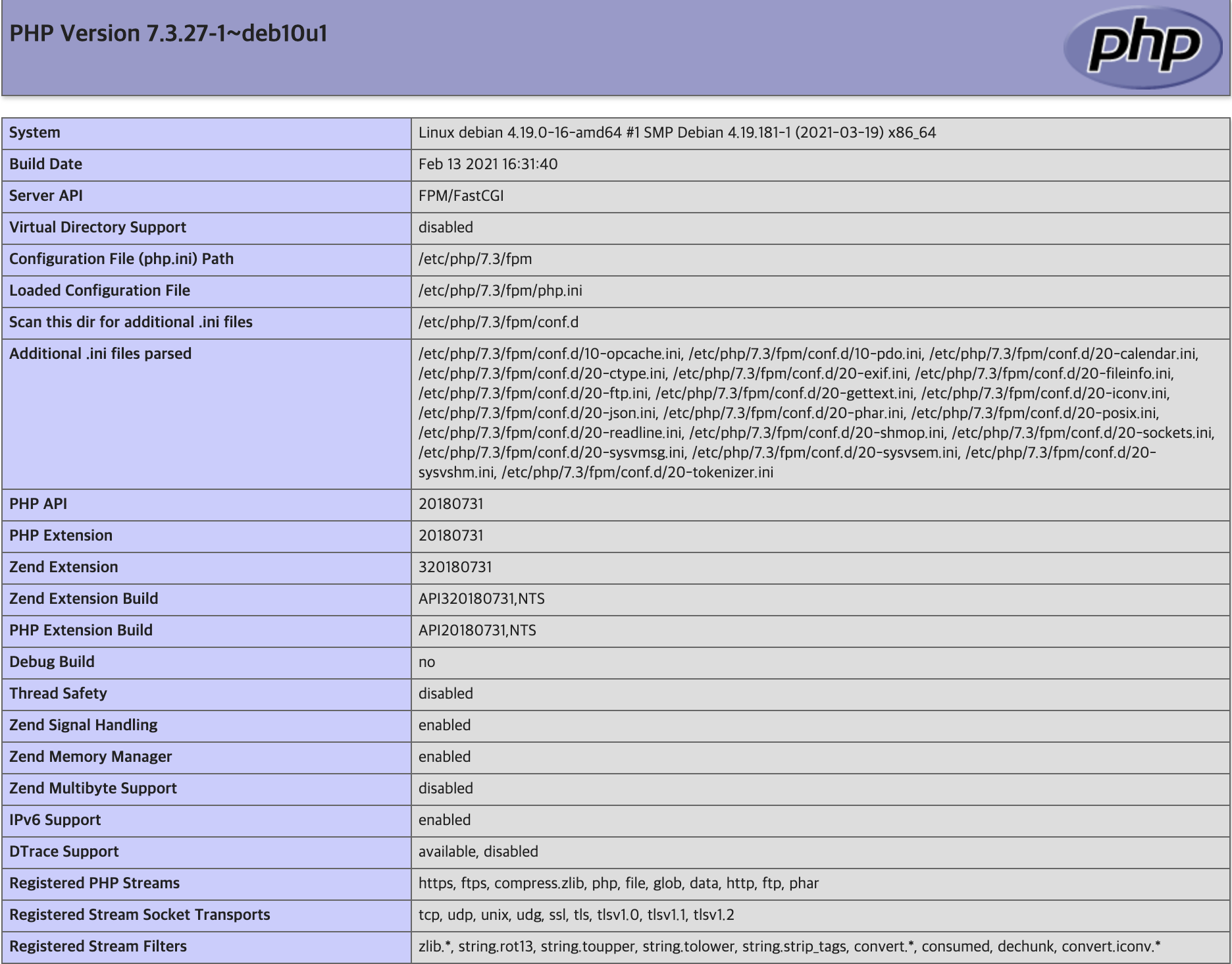 다음과 같이 FPM/FastCGI 가 잘 적용되었음을 확인할 수 있다.