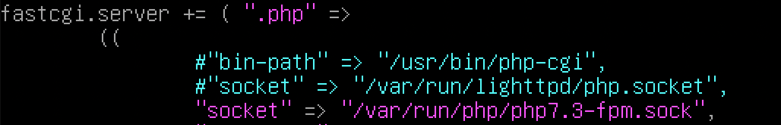 vi /etc/lighttpd/conf-available/15-fastcgi-php.conf