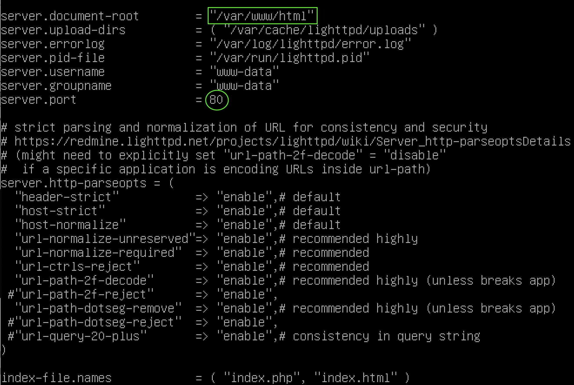 이제, 다음 명령을 통해 lighttpd 의 설정을 확인해보자.