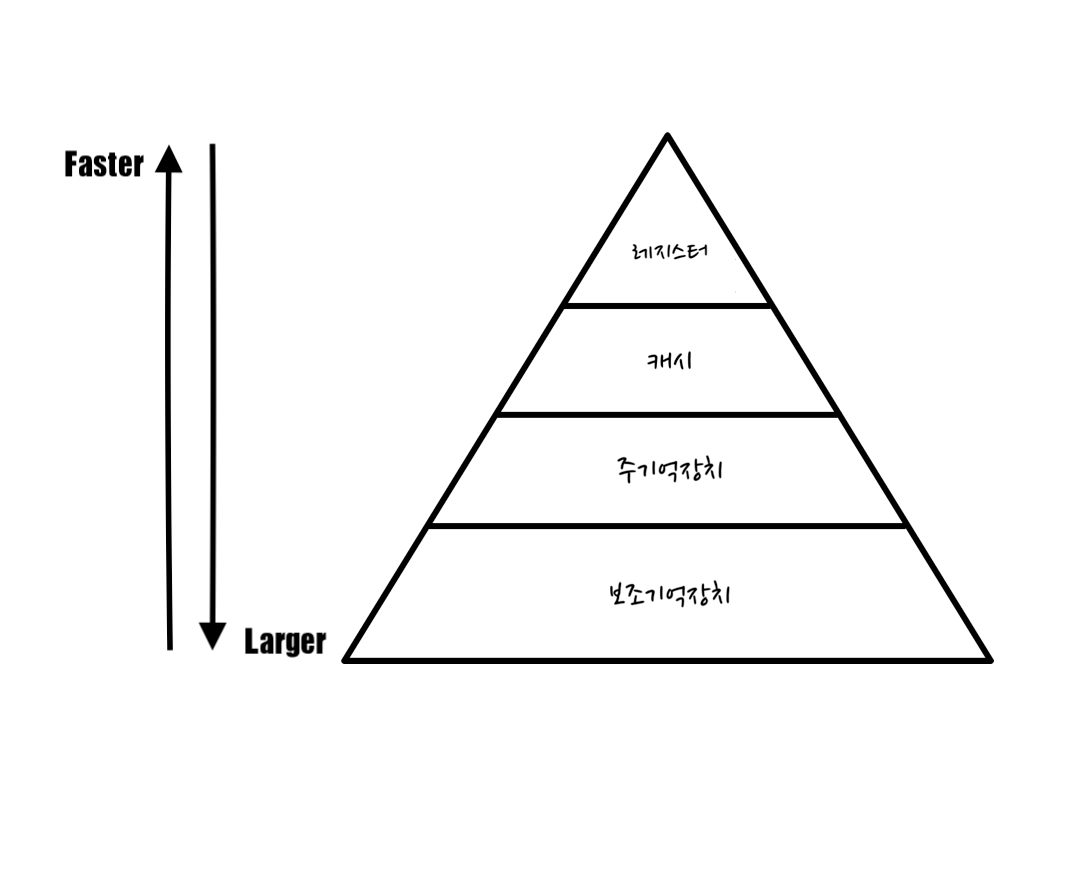 위로 갈 수록 속도가 빠르고, 용량이 작다!