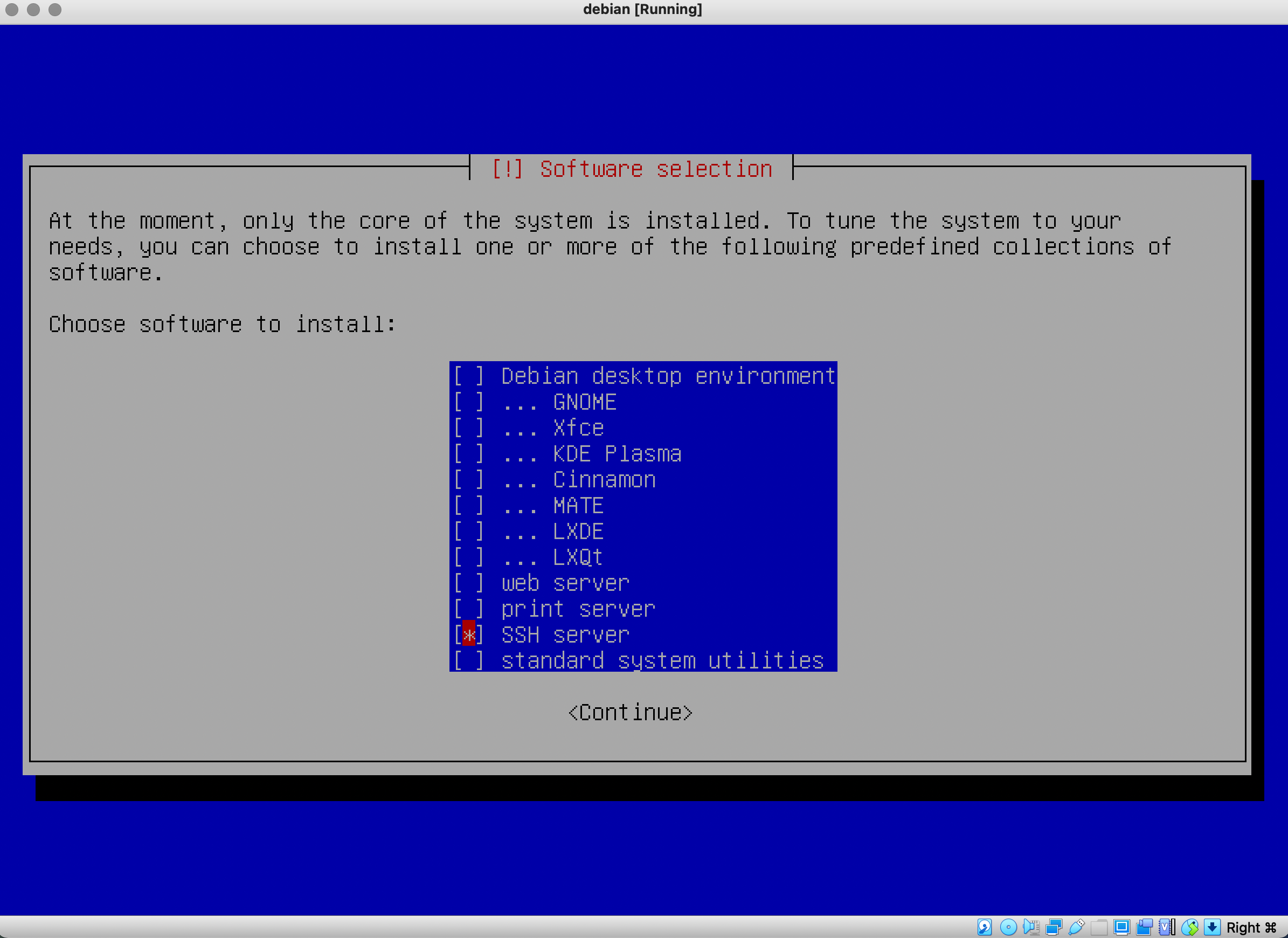 파티셔닝이 끝난뒤 다음 단계로 넘어가면, 설치할 software를 선택하는 과정이 있다.