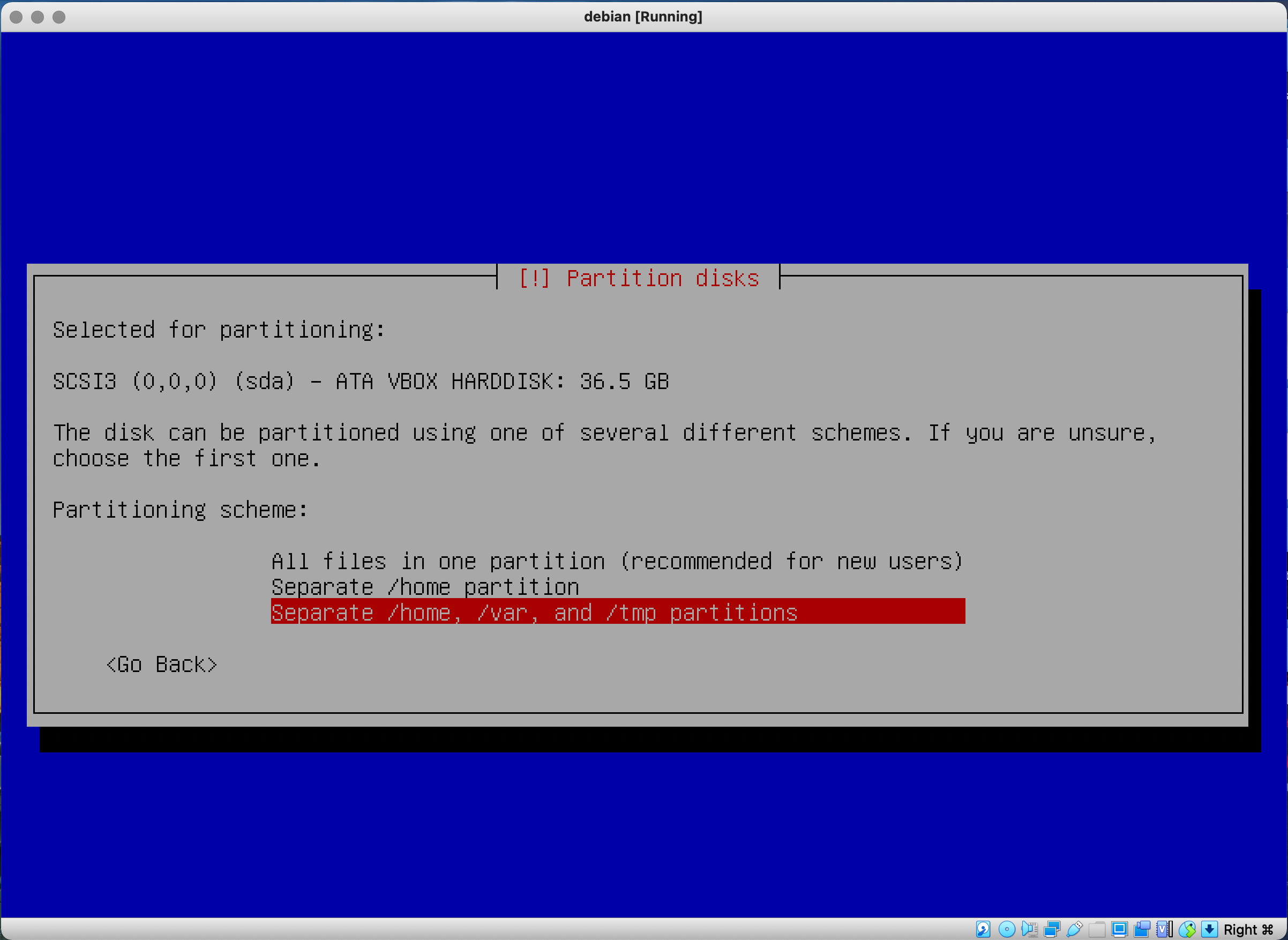 VM 실행 후, hostname, domain 등을 원하는대로 설정한 뒤, 디스크를 파티셔닝할 수 있다.