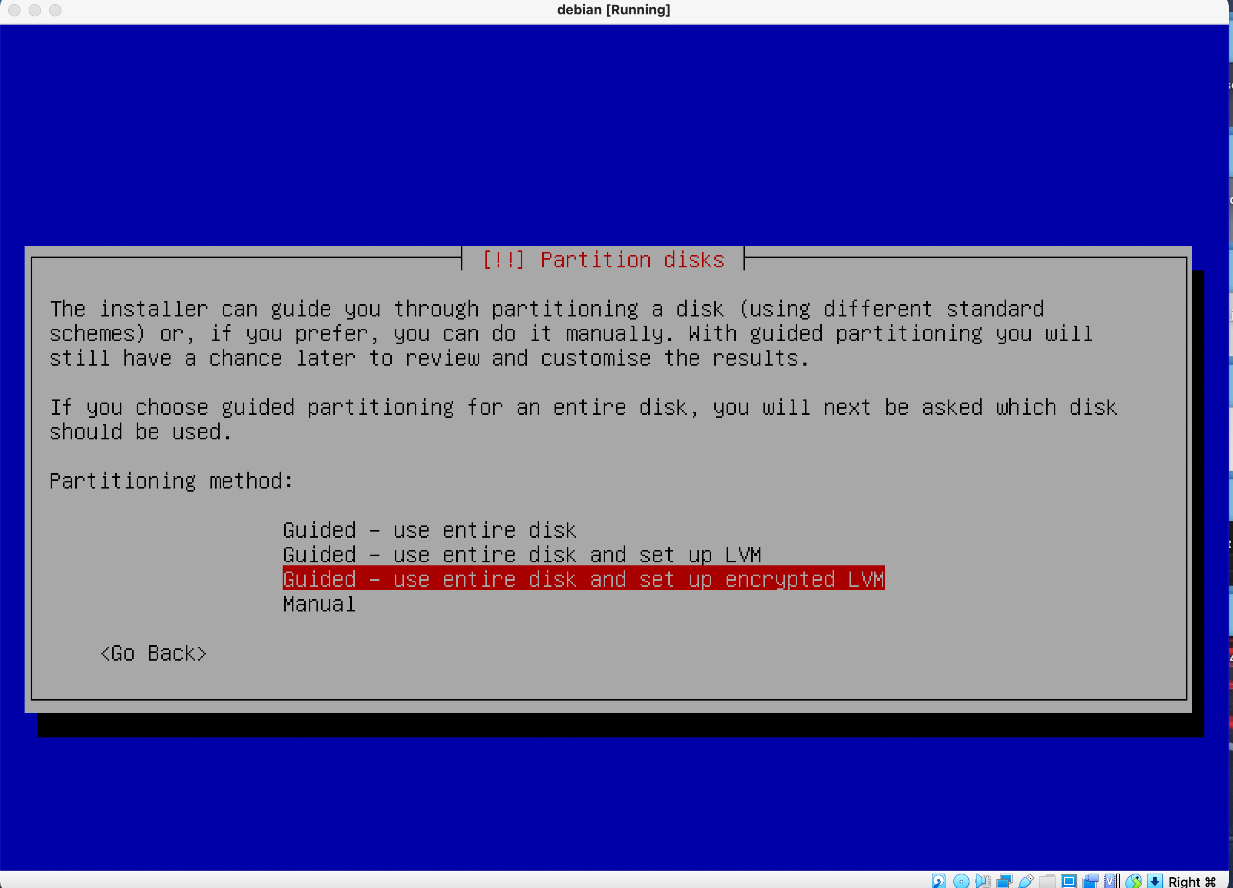 암호화된 LVM 파티션을 이용하고 싶어, 일단 해당 Guided 옵션을 선택해 보았다.