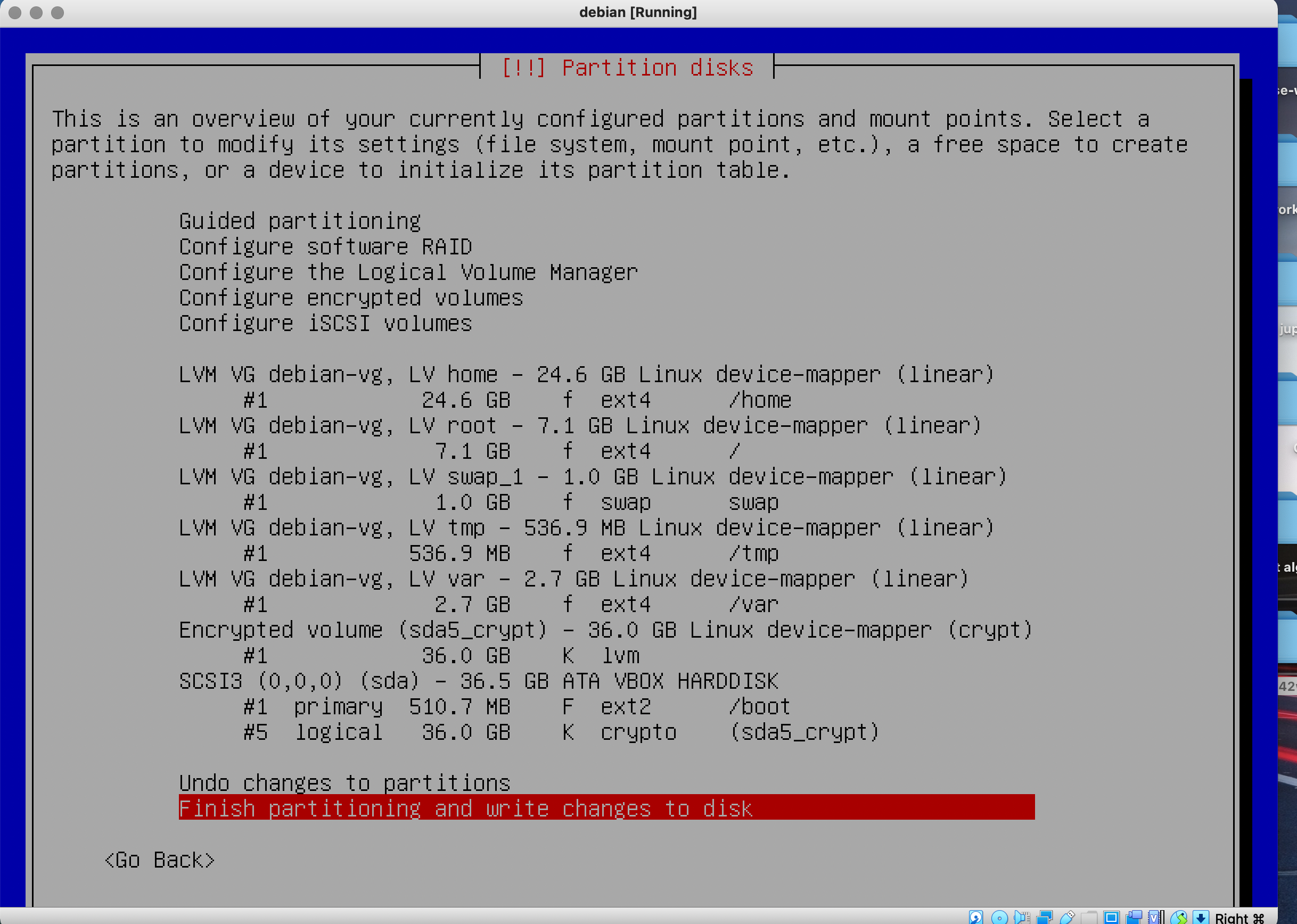 Guided 옵션에서 자동으로 구성된 파티션과 LVM 그룹명이 마음에 들지 않아, 임의로 설정해주려고 한다.