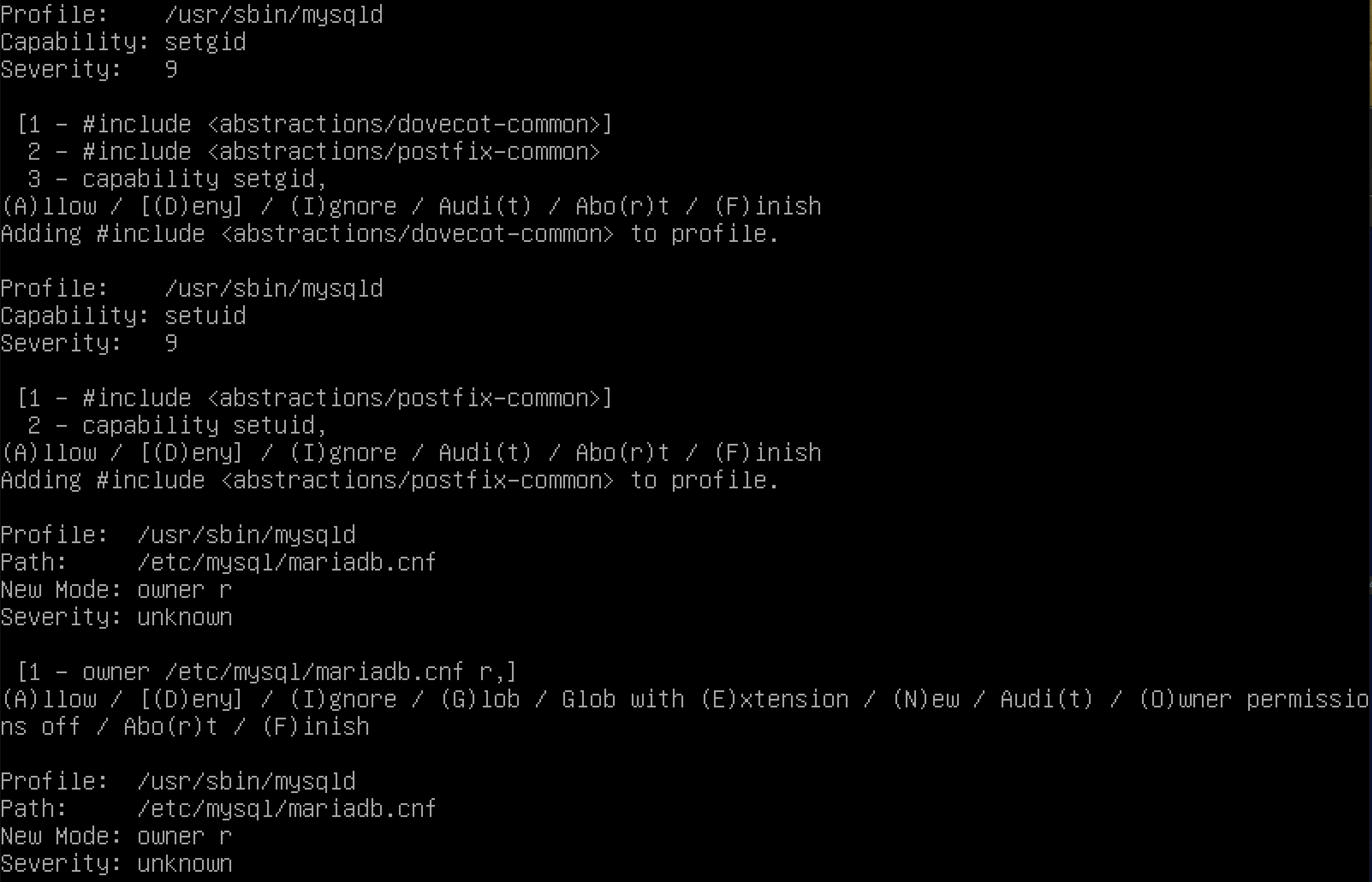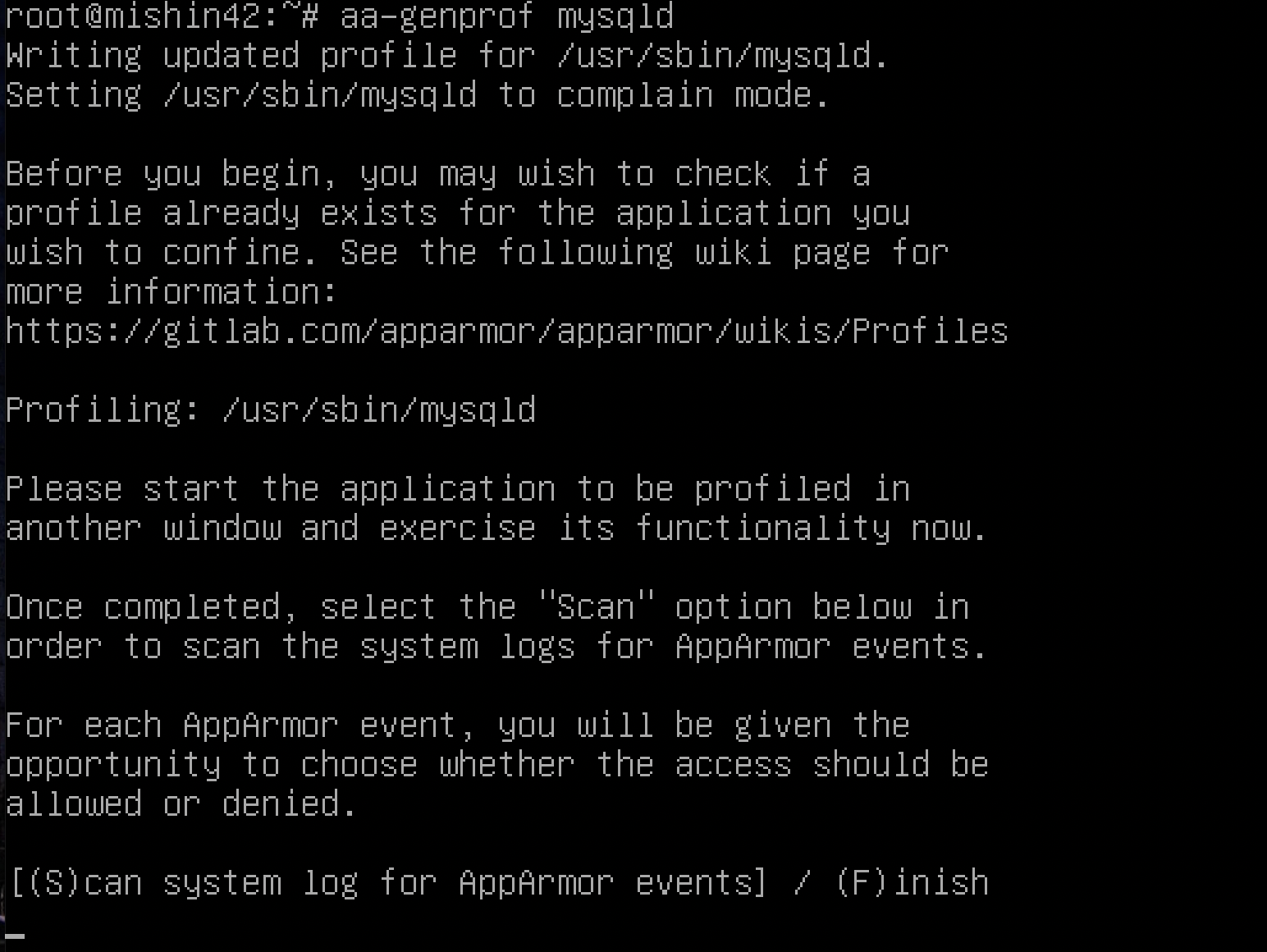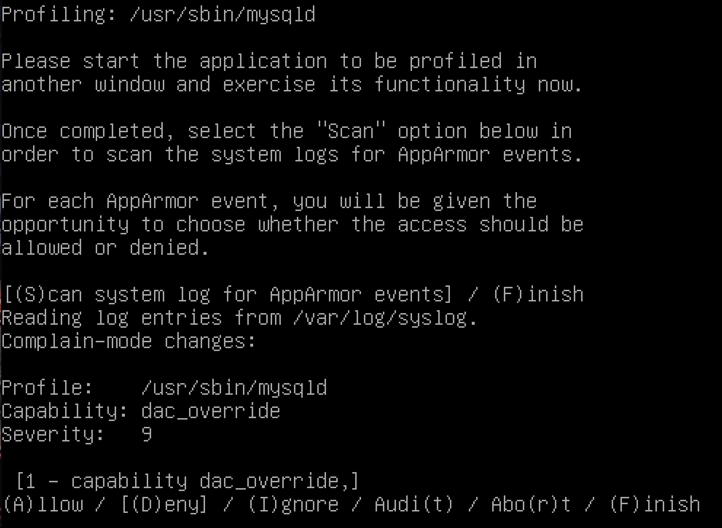 aa-genprof 에서 S 키를 통해 스캔되는 이벤트들에 대한 작업을 설정한다.