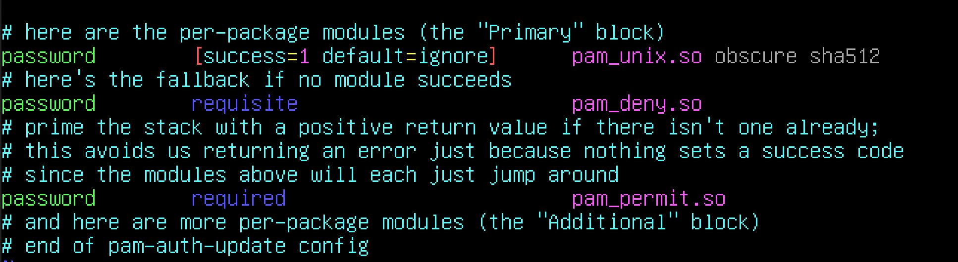 다른 여러가지 패스워드 정책을 확인하기 위해 다음 파일을 살펴보자.